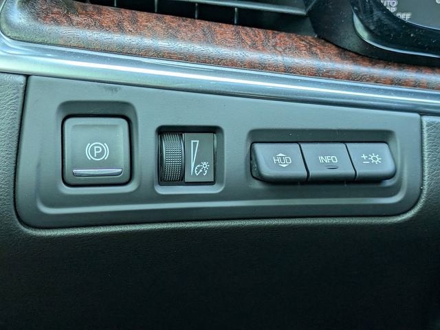 - Opens or closes when the system senses the key fob and the driver extends their foot under the left-hand side of the rear bumper over an image of the Cadillac Crest projected under the vehicle