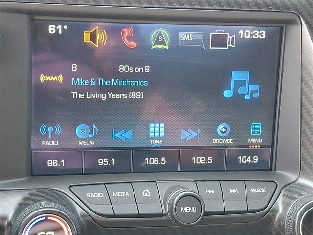 This Vehicle Includes the Following Options: Custom Leather Wrapped Interior Package, Memory Package, Preferred Equipment Group 3LT (3LT Interior Trim, Auto-Dimming Inside Frameless Rearview Mirror, Body-Color Outside Heated Power-Adjustable Mirrors, Bose Advanced 10-Speaker Audio System Feature, Cargo Net, Front Curb View Cameras, Head-Up Display, Heated & Vented Driver & Passenger Seats, Luggage Shade, Performance Data & Video Recorder, Power Lumbar/Bolster Seat Adjusters, Radio: Chevrolet MyLink w/Navigation, Theft Deterrent System, and Universal Home Remote), Sueded Microfiber-Wrapped Interior Trim Package, 4-Wheel Disc Brakes, 8-Way Driver & Passenger Seat Adjusters, 9 Speakers, ABS brakes, Air Conditioning, Alloy wheels, AM/FM radio: SiriusXM, Apple CarPlay, Automatic temperature control, Bose Premium 9-Speaker Audio System Feature, Bumpers: body-color, Compass, Delay-off headlights, Driver door bin, Driver vanity mirror, Dual front impact airbags, Dual front side impact airbags, Electronic Stability Control, Emergency communication system, Exterior Parking Camera Rear, Four wheel independent suspension, Front anti-roll bar, Front Bucket Seats, Front Center Armrest, Front dual zone A/C, Front reading lights, Fully automatic headlights, GT Bucket Seats, Heated door mirrors, High-Intensity Discharge Headlights, Illuminated entry, Leather Shift Knob, Leather steering wheel, Low tire pressure warning, Occupant sensing airbag, Outside temperature display, Painted Body-Color Carbon Fiber Removable Roof Panel, Panic alarm, Passenger door bin, Passenger vanity mirror, Power door mirrors, Power driver seat, Power passenger seat, Power steering, Power windows, Premium audio system: Chevrolet MyLink, Radio data system, Rear anti-roll bar, Rear window defroster, Remote keyless entry, Speed control, Speed-sensing steering, Spoiler, Sport steering wheel, Steering wheel mounted audio controls, Tachometer, Telescoping steering wheel, Tilt steering wheel, Traction control, Trip computer, Variably intermittent wipers, Voltmeter, and Wheels: 19 x 8.5 Fr & 20 x 10 Rr 5-Split Spoke.