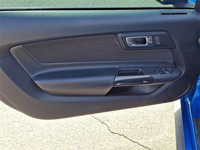 This Vehicle Includes the Following Options: Equipment Group 300A, GT Performance Package (Engine Spun Aluminum Instrument Panel, Gauge Pack (Oil Pressure & Vacuum), HD Front Springs, Larger Brake Rotors, Larger Radiator, Unique Stability Control, and Wheels: 19 x 9 Fr & 19 x 9.5 Rr Ebony Black), 3.15 Limited Slip Rear Axle Ratio, 4-Wheel Disc Brakes, 6 Speakers, ABS brakes, Active Valve Performance Exhaust, Air Conditioning, Alloy wheels, AM/FM radio, AM/FM Stereo, Auto-dimming Rear-View mirror, Brake assist, Bumpers: body-color, Cloth Bucket Seats, Compass, Delay-off headlights, Driver door bin, Driver vanity mirror, Dual front impact airbags, Dual front side impact airbags, Electronic Stability Control, Emergency communication system: 911 Assist, Exterior Parking Camera Rear, Four wheel independent suspension, Front anti-roll bar, Front Bucket Seats, Front Center Armrest, Front fog lights, Front reading lights, Fully automatic headlights, Illuminated entry, Knee airbag, Low tire pressure warning, Occupant sensing airbag, Outside temperature display, Overhead airbag, Overhead console, Panic alarm, Passenger door bin, Passenger vanity mirror, Power door mirrors, Power driver seat, Power passenger seat, Power steering, Power windows, Radio data system, Rear anti-roll bar, Rear window defroster, Remote keyless entry, Security system, Speed control, Speed-sensing steering, Speed-Sensitive Wipers, Split folding rear seat, Spoiler, Steering wheel mounted audio controls, SYNC Communications & Entertainment System, Tachometer, Telescoping steering wheel, Tilt steering wheel, Traction control, Trip computer, Variably intermittent wipers, Voltmeter, and Wheels: 18 x 8 Machined-Face Aluminum.