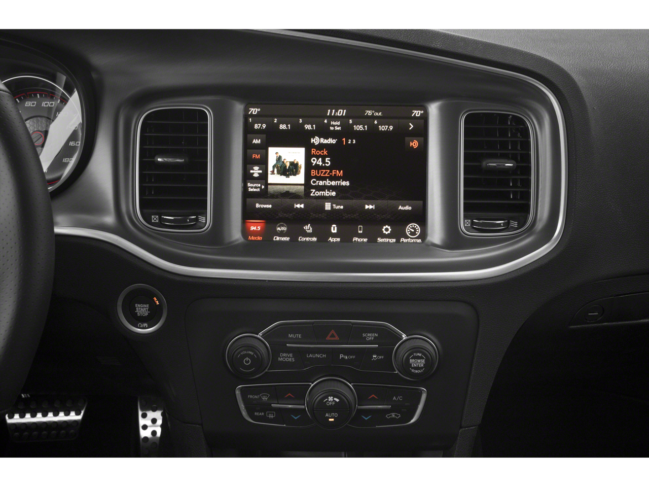 This Vehicle Includes the Following Options: Driver Convenience Group (Auto-Dimming Exterior Driver Mirror, Bi-Function HID Projector Head Lamps, Blind Spot & Cross Path Detection, Blind Spot Power Heated Mirror, and Exterior Mirrors Courtesy Lamps), Dynamics Package (Brake Calipers - Black, Brembo 6-Pot Fixed Front Caliper Brakes, and Leather Flat-Bottom Steering Wheel), Navigation & Travel Group (5-Year SiriusXM Traffic Service, 5-Year SiriusXM Travel Link Service, Radio: Uconnect 4C Nav w/8.4 Display, SiriusXM Traffic Plus, and SiriusXM Travel Link), Plus Group (Auto Adjust In Reverse Exterior Mirrors, Black-Edged Premium Floormats, Blind Spot Memory/Power/Heat Mirror, Driver & Passenger Lower LED Lamps, Front Overhead LED Lighting, Heated 2nd Row Seats, Illuminated Rear Cupholders, Power Driver/Passenger 4-Way Lumbar Adjust, Power Front Driver/Passenger Seats, Power Tilt/Telescope Steering Column, Premium-Stitched Dash Panel, Radio/Driver Seat/Mirrors Memory, Rear Seat Armrest w/Storage Cupholder, Scat Pack Logo Nappa/Alcantara Seat, and Ventilated Front Seats), Quick Order Package 21W, Technology Group (Adaptive Cruise Control w/Stop, Advanced Brake Assist, Auto High Beam Headlamp Control, Full Speed FWD Collision Warn Plus, Lane Departure Warning Plus, and Rain Sensitive Windshield Wipers), Black Artificial Leather, 4-Wheel Disc Brakes, 6 Speakers, ABS brakes, Air Conditioning, Alloy wheels, AM/FM radio: SiriusXM, Anti-whiplash front head restraints, Apple CarPlay/Android Auto, Auto-dimming Rear-View mirror, Automatic temperature control, Brake assist, Brake Calipers - Red, Bumpers: body-color, Cloth Performance Seats w/Bee Logo, Compass, Delay-off headlights, Driver door bin, Driver vanity mirror, Dual front impact airbags, Dual front side impact airbags, Electronic Stability Control, Emergency communication system: SiriusXM Guardian, Four wheel independent suspension, Front anti-roll bar, Front Bucket Seats, Front Center Armrest, Front dual zone A/C, Front fog lights, Front reading lights, Fully automatic headlights, Garage door transmitter: HomeLink, Heated front seats, Illuminated entry, Knee airbag, Leather Shift Knob, Low tire pressure warning, Occupant sensing airbag, Outside temperature display, Overhead airbag, Overhead console, Panic alarm, ParkView Rear Back-Up Camera, Passenger door bin, Passenger vanity mirror, Power door mirrors, Power driver seat, Power passenger seat, Power steering, Power Sunroof, Power windows, Radio data system, Radio: Uconnect 4C w/8.4 Display, Rear anti-roll bar, Rear reading lights, Rear seat center armrest, Rear window defroster, Remote keyless entry, Security system, Speed control, Speed-Sensitive Wipers, Split folding rear seat, Spoiler, Sport steering wheel, Steering wheel mounted audio controls, Tachometer, Telescoping steering wheel, Tilt steering wheel, Traction control, Trip computer, Variably intermittent wipers, Wheels: 20 x 9.5 Brass Monkey, and Wheels: 20 x 9 Lo Gloss Granite Crystal.