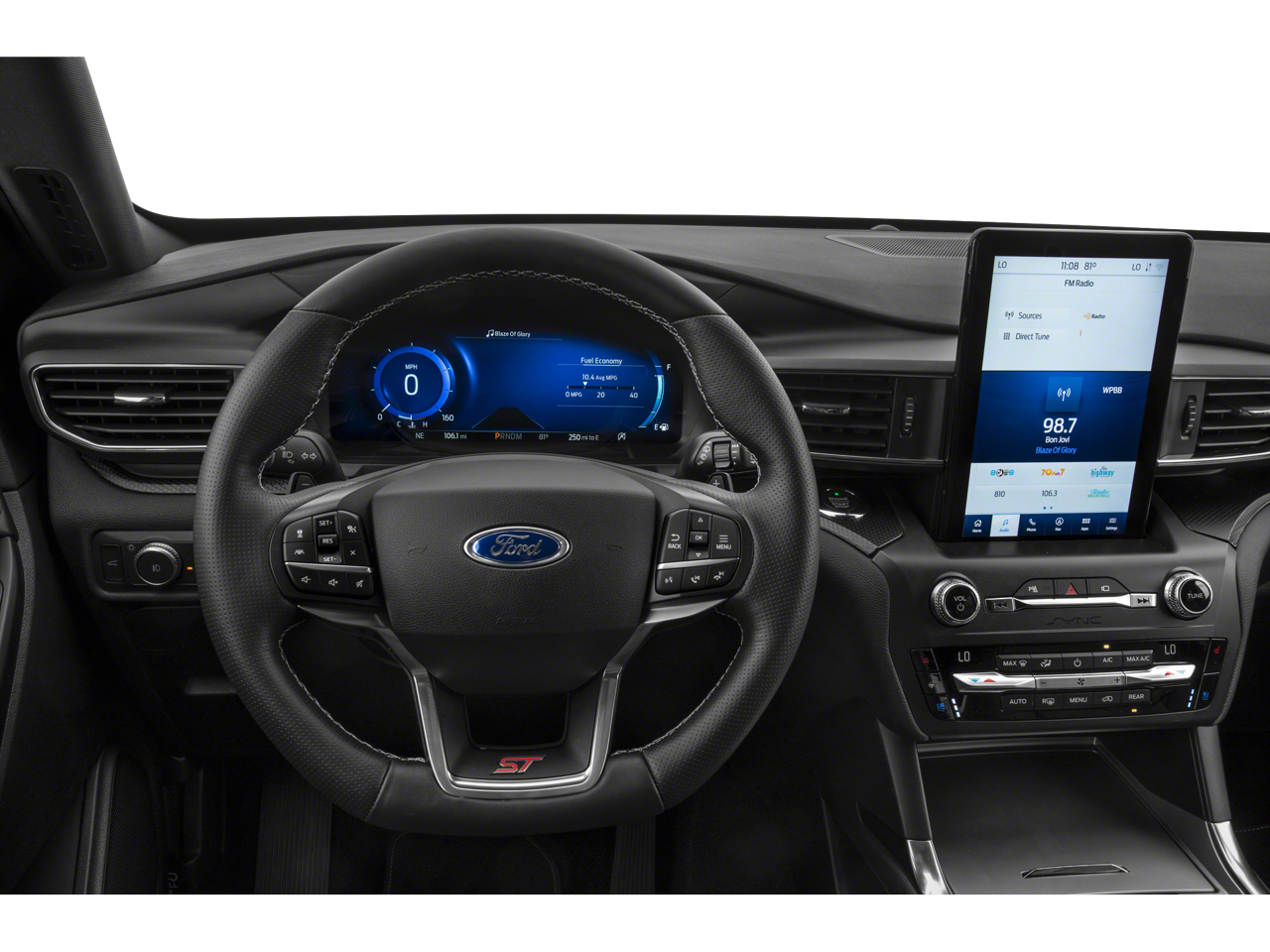 THIS VEHICLE INCLUDES THE FOLLOWING FEATURES AND OPTIONS: Equipment Group 400A, Premium Technology Package (10.1 LCD Capacitive Portrait Touchscreen, 2 Additional Speakers, and Leather Htd/Ventilated Sport Captain's Chairs), ST Street Pack (Performance Front & Rear Brakes and Wheels: 21 Aluminum), 4WD, 12 Speakers, 20 Machined Aluminum w/Painted Pockets Wheels, 3.58 Non-Limited-Slip Rear Axle Ratio, 3rd row seats: bench, 4-Wheel Disc Brakes, ABS brakes, Air Conditioning, Alloy wheels, AM/FM radio: SiriusXM, Auto High-beam Headlights, Auto-dimming door mirrors, Auto-dimming Rear-View mirror, Automatic temperature control, Brake assist, Bumpers: body-color, Compass, Delay-off headlights, Driver door bin, Driver vanity mirror, Dual front impact airbags, Dual front side impact airbags, Electronic Stability Control, Emergency communication system: SYNC 3 911 Assist, Exterior Parking Camera Rear, FordPass Connect, Four wheel independent suspension, Front & Second Row Floor Liners, Front anti-roll bar, Front Bucket Seats, Front Center Armrest, Front dual zone A/C, Front fog lights, Front reading lights, Fully automatic headlights, Garage door transmitter: HomeLink, Heated door mirrors, Heated front seats, Heated rear seats, Heated steering wheel, Illuminated entry, Knee airbag, Leather steering wheel, Low tire pressure warning, Memory seat, Navigation System, Occupant sensing airbag, Outside temperature display, Overhead airbag, Overhead console, Panic alarm, Passenger door bin, Passenger vanity mirror, Power door mirrors, Power driver seat, Power Liftgate, Power passenger seat, Power steering, Power windows, Radio data system, Radio: B&O Sound System by Bang & Olufsen, Rain sensing wipers, Rear air conditioning, Rear anti-roll bar, Rear reading lights, Rear window defroster, Rear window wiper, Remote keyless entry, Roof rack: rails only, Security system, Speed control, Speed-sensing steering, Speed-Sensitive Wipers, Split folding rear seat, Spoiler, Sport steering wheel, Steering wheel memory, Steering wheel mounted audio controls, SYNC 3 Communications & Entertainment System, SYNC 3/Apple CarPlay/Android Auto, Tachometer, Telescoping steering wheel, Tilt steering wheel, Traction control, Trip computer, Turn signal indicator mirrors, Twin Panel Moonroof, Variably intermittent wipers, Ventilated front seats, and Voice-Activated Touchscreen Navigation System.
