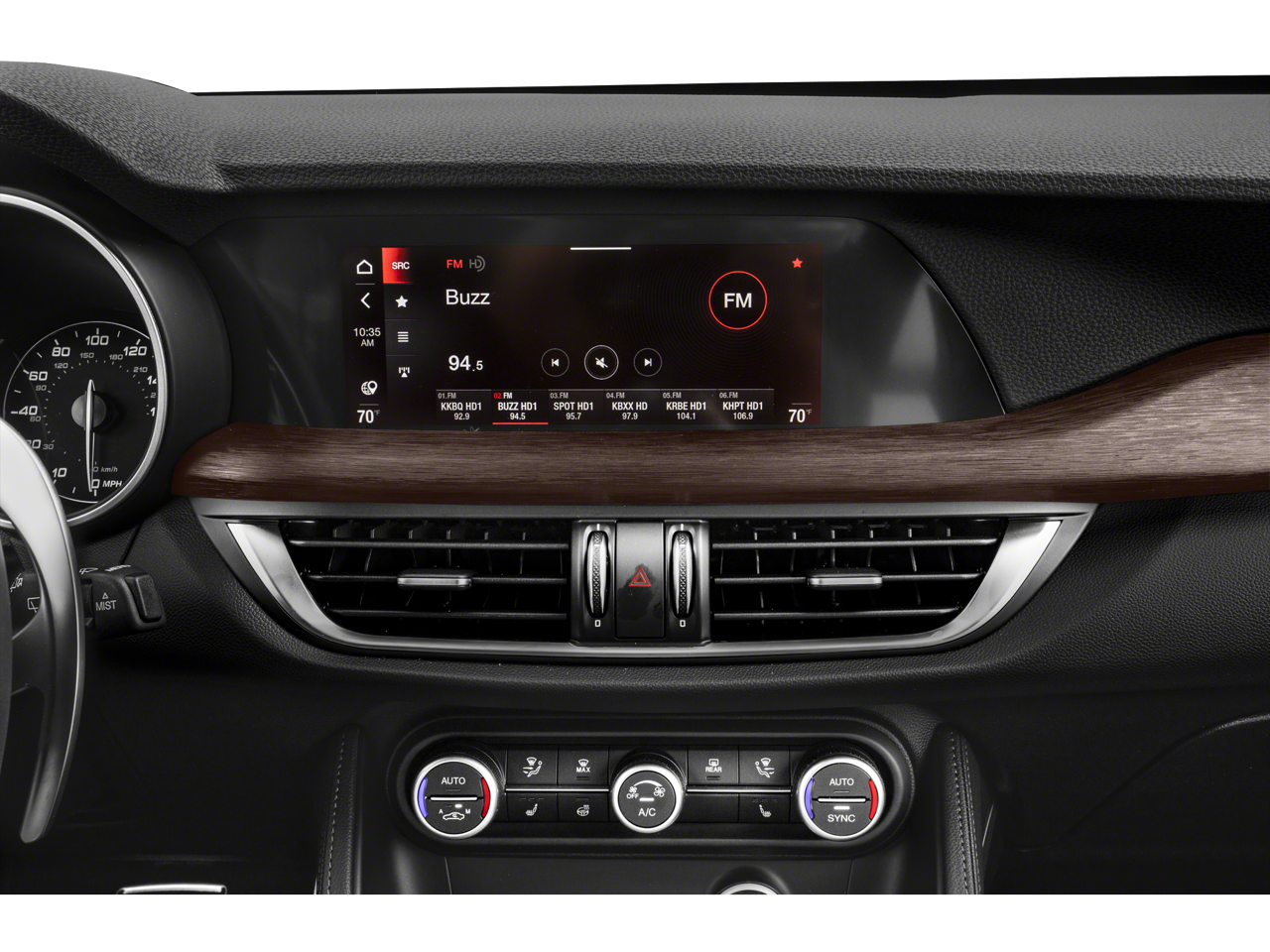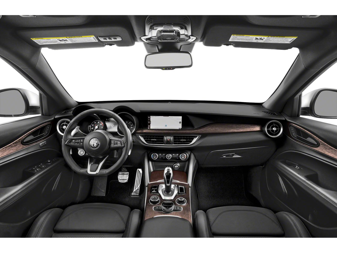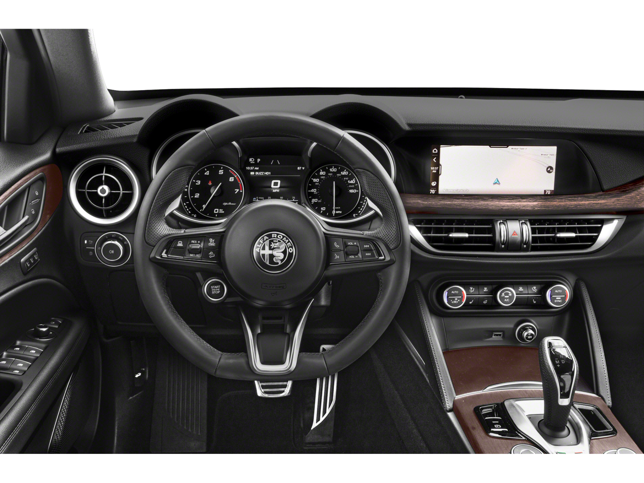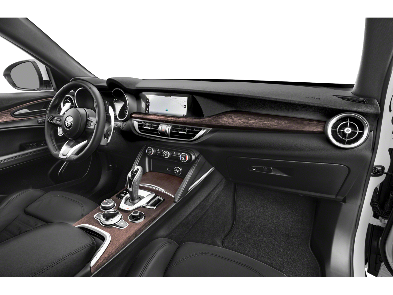 Slip behind the wheel of the Stelvio Ti and you'll be greeted by a cabin that exudes sophistication and attention to detail. The leather-wrapped steering wheel and shift knob provide a tactile connection to the road, while the heated front and rear seats ensure comfort in any season. The harman/kardon premium audio system delivers an immersive listening experience, complementing the Stelvio's dynamic driving characteristics.