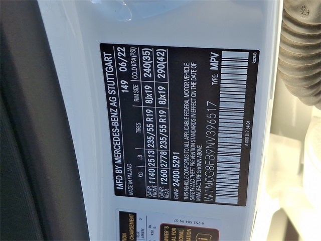 THIS VEHICLE INCLUDES THE FOLLOWING FEATURES AND OPTIONS: 10.25 Center Touchscreen Display, 3.27 Axle Ratio, 4-Way Lumbar Support, 4-Wheel Disc Brakes, 6 Speakers, ABS brakes, Air Conditioning, Alloy wheels, AM/FM radio, Apple CarPlay®/Android Auto®, Auto High-beam Headlights, Auto tilt-away steering wheel, Auto-dimming door mirrors, Auto-dimming Rear-View mirror, Automatic temperature control, Brake assist, Bumpers: body-color, Child-Seat-Sensing Airbag, Delay-off headlights, Driver door bin, Driver vanity mirror, Dual front impact airbags, Dual front side impact airbags, Electronic Stability Control, Emergency communication system: eCall Emergency System, Exterior Parking Camera Rear, Four wheel independent suspension, Front anti-roll bar, Front Bucket Seats, Front Center Armrest, Front dual zone A/C, Front reading lights, Fully automatic headlights, Garage door transmitter: HomeLink, Genuine wood dashboard insert, Heated door mirrors, Heated Front Bucket Seats, Heated front seats, Illuminated entry, Knee airbag, Leather steering wheel, Low tire pressure warning, MB-Tex Upholstery, Memory seat, Occupant sensing airbag, Outside temperature display, Overhead airbag, Overhead console, Panic alarm, Passenger door bin, Passenger vanity mirror, Power door mirrors, Power driver seat, Power Front Seat w/Driver Memory, Power Liftgate, Power passenger seat, Power steering, Power windows, Radio data system, Radio: MBUX Multimedia System, Rain sensing wipers, Rear anti-roll bar, Rear fog lights, Rear reading lights, Rear seat center armrest, Rear window defroster, Rear window wiper, Remote keyless entry, Roof rack: rails only, Security system, Speed control, Speed-sensing steering, Split folding rear seat, Spoiler, Steering wheel memory, Steering wheel mounted audio controls, Tachometer, Telescoping steering wheel, Tilt steering wheel, Traction control, Trip computer, Turn signal indicator mirrors, Variably intermittent wipers, and Wheels: 8J x 18 ET 38 Split 5-Spoke.