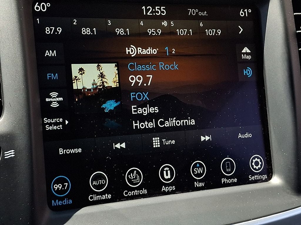 THIS VEHICLE INCLUDES THE FOLLOWING FEATURES AND OPTIONS: Comfort Group (276 Watt Amplifier, 6 Premium Alpine Speakers, Adaptive Bi-Xenon HID Headlamps, Auto-Dimming Rear-View Mirror, Automatic Headlamp Leveling System, Blind Spot & Cross Path Detection, Body Color Exterior Mirrors, Delete Power Backlight Sunshade, Deluxe Security Alarm, Door Sill Scuff Pads, Driver & Passenger Lower LED Lamps, Exterior Mirrors Courtesy Lamps, Exterior Mirrors w/Heating Element, Exterior Mirrors w/Supplemental Signals, Front & Rear LED Map Pocket Lights, Heated Front Seats, Heated Second Row Seats, Heated Steering Wheel, Leather w/Perforated Insert Bucket Seats, Power 2-Way Driver Lumbar Adjust, Power 2-Way Passenger Lumbar Adjust, Power Front Driver/Passenger Seats, Power Multi Function Mirror Manual Fold, Power Tilt/Telescope Steering Column, Radio/Driver Seat/Mirrors Memory, Rear Armrest w/Cupholder Seat, and Ventilated Front Seats), Popular Equipment Group (1-Yr SiriusXM Guardian Trial, 2-Piece Shark Fin Antenna, 4G LTE Wi-Fi Hot Spot, 5-Year SiriusXM Traffic Service, 5-Year SiriusXM Travel Link Service, 506 Watt Amplifier, 8.4 Touchscreen Display, 9 Premium Alpine Speakers, Apple CarPlay, Dual-Pane Panoramic Sunroof, For Details, Visit DriveUconnect.com, For More Info, Call 800-643-2112, Google Android Auto, GPS Antenna Input, GPS Navigation, HD Radio, Integrated Center Stack Radio, Integrated Voice Command w/Bluetooth®, Media Hub (2 USB, AUX), Radio: Uconnect 4C Nav w/8.4 Display, SiriusXM Radio Service, SiriusXM Satellite Radio, SiriusXM Traffic Plus, SiriusXM Travel Link, Surround Sound, Trunk Mounted Subwoofer, and USB Host Flip), Quick Order Package 22F, SafetyTec Plus Group (180 Amp Alternator, Adaptive Cruise Control w/Stop, Advanced Brake Assist, Auto High Beam Headlamp Control, Full Speed FWD Collision Warn Plus, Lane Departure Warning Plus, and Rain Sensitive Windshield Wipers), 4-Wheel Disc Brakes, 6 Speakers, ABS brakes, Air Conditioning, Alloy wheels, AM/FM radio: SiriusXM, Anti-whiplash front head restraints, Apple CarPlay/Android Auto, Auto-dimming door mirrors, Auto-dimming Rear-View mirror, Automatic temperature control, Brake assist, Bumpers: body-color, Compass, Delay-off headlights, Driver door bin, Driver vanity mirror, Dual front impact airbags, Dual front side impact airbags, Electronic Stability Control, Emergency communication system: SiriusXM Guardian, Four wheel independent suspension, Front anti-roll bar, Front Bucket Seats, Front Center Armrest, Front dual zone A/C, Front fog lights, Front reading lights, Fully automatic headlights, Garage door transmitter, Heated door mirrors, Heated front seats, Illuminated entry, Knee airbag, Leather steering wheel, Leather Trimmed Bucket Seats, Low tire pressure warning, Occupant sensing airbag, Outside temperature display, Overhead airbag, Overhead console, Panic alarm, ParkView Rear Back-Up Camera, Passenger door bin, Passenger vanity mirror, Power door mirrors, Power driver seat, Power passenger seat, Power steering, Power windows, Radio data system, Radio: Uconnect 4C w/8.4 Display, Rear anti-roll bar, Rear reading lights, Rear seat center armrest, Rear window defroster, Remote keyless entry, Security system, Speed control, Speed-sensing steering, Split folding rear seat, Steering wheel mounted audio controls, Tachometer, Telescoping steering wheel, Tilt steering wheel, Traction control, Trip computer, Turn signal indicator mirrors, Variably intermittent wipers, and Wheels: 19 x 7.5 Black Noise Painted. 18/27 City/Highway MPG