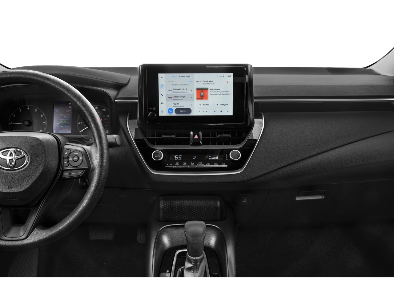 THIS VEHICLE INCLUDES THE FOLLOWING FEATURES AND OPTIONS: 4-Wheel Disc Brakes, 6 Speakers, ABS brakes, Air Conditioning, AM/FM radio: SiriusXM, Auto High-beam Headlights, Automatic temperature control, Brake assist, Bumpers: body-color, Delay-off headlights, Driver door bin, Driver vanity mirror, Dual front impact airbags, Dual front side impact airbags, Electronic Stability Control, Emergency communication system: Safety Connect (up to 10-year trial subscription), Exterior Parking Camera Rear, Front anti-roll bar, Front Bucket Seats, Front Center Armrest, Front reading lights, Front wheel independent suspension, Fully automatic headlights, Illuminated entry, Knee airbag, Low tire pressure warning, Occupant sensing airbag, Outside temperature display, Overhead airbag, Panic alarm, Passenger door bin, Passenger vanity mirror, Power door mirrors, Power steering, Power windows, Premium Fabric Seat Trim, Radio data system, Radio: 8 Toyota Audio Multimedia, Rear anti-roll bar, Rear seat center armrest, Rear side impact airbag, Rear window defroster, Remote keyless entry, Speed control, Split folding rear seat, Steering wheel mounted audio controls, Tachometer, Telescoping steering wheel, Tilt steering wheel, Traction control, Trip computer, Variably intermittent wipers, and Wheels: 16 Wide Vent Steel.