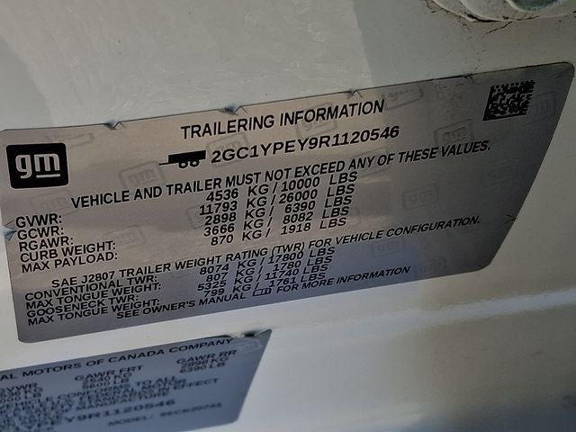 This Vehicle Includes the Following Options: Preferred Equipment Group 1LZ (120-Volt Bed Mounted Power Outlet, 120-Volt Interior Power Outlet, 170 Amp Alternator, 6-Speaker Audio System, Auto-Dimming Inside Rear-View Mirror, Bluetooth® For Phone, Chevrolet Connected Access Capable, Chrome Door Handles, Chrome Mirror Caps, Color-Keyed Carpeting Floor Covering, Compass, Deep-Tinted Glass, Electric Rear-Window Defogger, Electronic Cruise Control w/Set & Resume Speed, EZ Lift Power Lock & Release Tailgate, Front LED Fog Lamps, Front Rain-Sensing Wipers, Front Rubberized Vinyl Floor Mats, HD Rear Vision Camera, Heated Steering Wheel, Hitch Guidance w/Hitch View, In-Vehicle Trailering App System, Keyless Open & Start, Manual Tilt & Telescoping Steering Column, OnStar & Chevrolet Connected Services Capable, Power Door Locks, Power Front Windows w/Driver Express Up/Down, Power Front Windows w/Passenger Express Up/Down, Power Rear Windows w/Express Down, Push Button Start, Rear Rubberized Vinyl Floor Mats, Rear Wheelhouse Liners, Remote Vehicle Starter System, SiriusXM w/360L, Standard Tailgate, Steering Wheel Audio Controls, Unauthorized Entry Theft-Deterrent System, Wi-Fi Hotspot Capable, Wireless Phone Projection, and Wrapped Steering Wheel), Suspension Package, Up-Level Rear Seat w/Storage Package, 10-Speed Automatic, 4WD, Black Leather, 10-Way Power Driver Seat Adjuster w/Lumbar, 10-Way Power Passenger Seat Adjuster w/Lumbar, 220 Amp Alternator, 4-Wheel Disc Brakes, 6 Speakers, 6 Rectangular Chromed Tubular Assist Steps, 720 Cold-Cranking Amps Heavy-Duty Battery, ABS brakes, Air Conditioning, All-Weather Floor Liners (LPO), Alloy wheels, AM/FM radio: SiriusXM with 360L, Apple CarPlay/Android Auto, Auto High-beam Headlights, Auto-dimming door mirrors, Auto-dimming Rear-View mirror, Automatic temperature control, Black Chevytec Spray-On Bedliner, Brake assist, Bumpers: chrome, Delay-off headlights, Deleted 3 Years of Remote Access, Driver door bin, Driver Memory, Driver vanity mirror, Dual front impact airbags, Dual front side impact airbags, Durabed Pickup Bed, Electronic Stability Control, Engine Block Heater, Exhaust Brake, Front 40/20/40 Split-Bench Seats w/Lockable Storage, Front anti-roll bar, Front Center Armrest w/Storage, Front dual zone A/C, Front fog lights, Front License Plate Kit, Front reading lights, Front wheel independent suspension, Fully automatic headlights, Heated door mirrors, Heated Driver & Front Outboard Passenger Seating, Heated front seats, Heated steering wheel, Illuminated entry, LED Taillamps w/Fixed Signature, Low tire pressure warning, Memory seat, Occupant sensing airbag, Outside temperature display, Overhead airbag, Overhead console, Panic alarm, Passenger door bin, Passenger vanity mirror, Perf Leather-Appointed Front Outboard Seat Trim, Power door mirrors, Power driver seat, Power passenger seat, Power steering, Power windows, Premium audio system: Chevrolet Infotainment 3 Premium, Radio: Chevrolet Infotainment 3 Premium System, Rain sensing wipers, Rear reading lights, Rear seat center armrest, Rear step bumper, Rear window defroster, Remote keyless entry, Security system, Speed control, Speed-sensing steering, Split folding rear seat, Steering wheel mounted audio controls, Tachometer, Telescoping steering wheel, Tilt steering wheel, Traction control, Trip computer, Turn signal indicator mirrors, Variably intermittent wipers, Voltmeter, Wheels: 18 Machined Alum w/Silver Painted Accents, and Winter Grille Cover.
