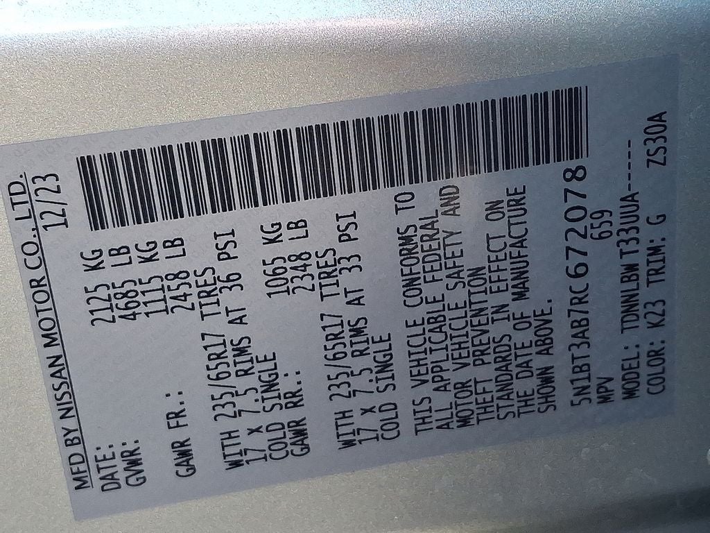 - Tires: 235/65R17 All Season