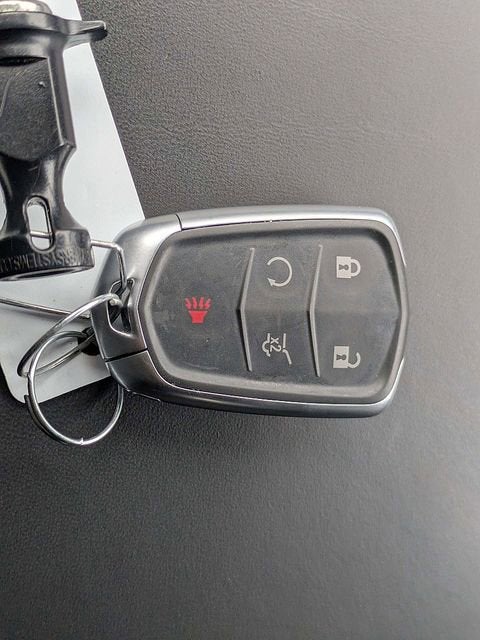 - Opens or closes when the system senses the key fob and the driver extends their foot under the left-hand side of the rear bumper over an image of the Cadillac Crest projected under the vehicle