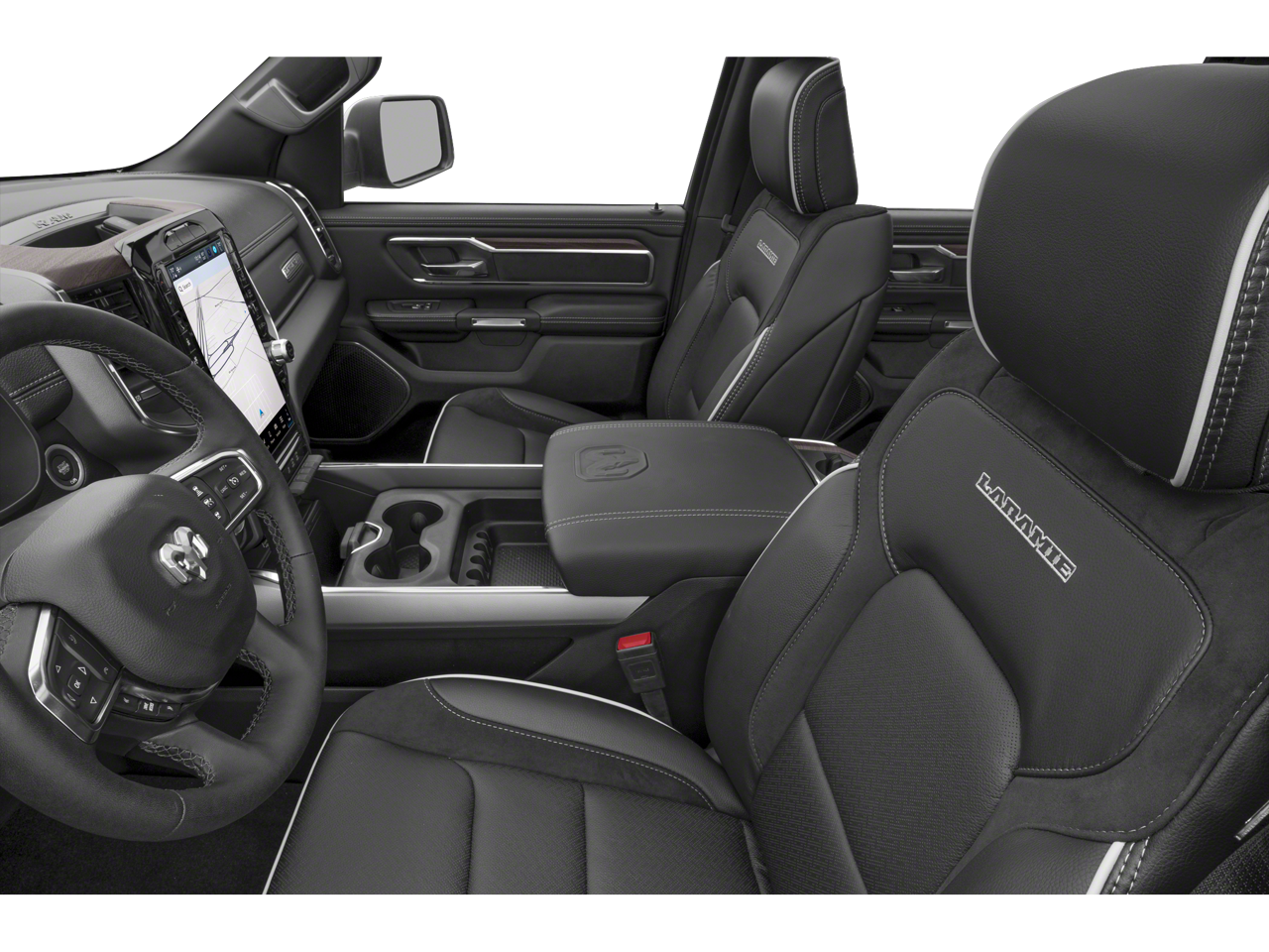 THIS VEHICLE INCLUDES THE FOLLOWING FEATURES AND OPTIONS: 10 Speakers, 3 Rear Seat Head Restraints, 3.55 Rear Axle Ratio, 4 Way Front Headrests, 4-Wheel Disc Brakes, 4G LTE Wi-Fi Hot Spot, ABS brakes, Air Conditioning, Alloy wheels, AM/FM radio: SiriusXM with 360L, Apple CarPlay, Apple CarPlay/Android Auto, Audio memory, Auto High-beam Headlights, Auto Power-Folding Mirrors, Auto-dimming door mirrors, Auto-Dimming Exterior Driver Mirror, Auto-dimming Rear-View mirror, Automatic temperature control, Brake assist, Bumpers: chrome, Chrome Exterior Mirrors, Compass, Connected Travel & Traffic Services, Connectivity - US/Canada, Convex Wide-Angle Exterior Mirror Insert, Delay-off headlights, Driver door bin, Driver Seat Memory, Driver vanity mirror, Dual front impact airbags, Dual front side impact airbags, Electronic Stability Control, Exterior Mirrors Courtesy Lamps, Exterior Mirrors w/Heating Element, Exterior Mirrors w/Memory, Exterior Mirrors w/Supplemental Signals, Front anti-roll bar, Front Center Armrest w/Storage, Front dual zone A/C, Front fog lights, Front reading lights, Front Seat Back Map Pockets, Front wheel independent suspension, Fully automatic headlights, Garage door transmitter, Google Android Auto, GPS Antenna Input, GPS Navigation, HD Radio, Heated door mirrors, Heated Front Seats, Heated front seats, Heated rear seats, Heated Steering Wheel, Heated steering wheel, Illuminated entry, Integrated Voice Command w/Bluetooth®, Leather steering wheel, Leather Trim 40/20/40 Bench Seat, Low tire pressure warning, Memory seat, Navigation System, Occupant sensing airbag, Outside temperature display, Overhead airbag, Overhead console, Panic alarm, ParkView Rear Back-Up Camera, Passenger door bin, Passenger vanity mirror, Power 2-Way Driver Lumbar Adjust, Power 2-Way Passenger Lumbar Adjust, Power Adjust 8-Way Front Passenger Seat, Power door mirrors, Power driver seat, Power passenger seat, Power steering, Power windows, Radio data system, Radio: Uconnect 5 Nav w/12.0 Display, RAM Grille Badge - Chrome, Rear anti-roll bar, Rear reading lights, Rear seat center armrest, Rear step bumper, Remote keyless entry, Security system, SiriusXM w/360L, Speed control, Split folding rear seat, Steering wheel mounted audio controls, Tachometer, Telescoping steering wheel, Tilt steering wheel, Traction control, Trip computer, Turn signal indicator mirrors, USB Host Flip, Variably intermittent wipers, Ventilated Front Seats, Ventilated front seats, Voltmeter, and Wheels: 20 x 9 Premium Paint/Polish.